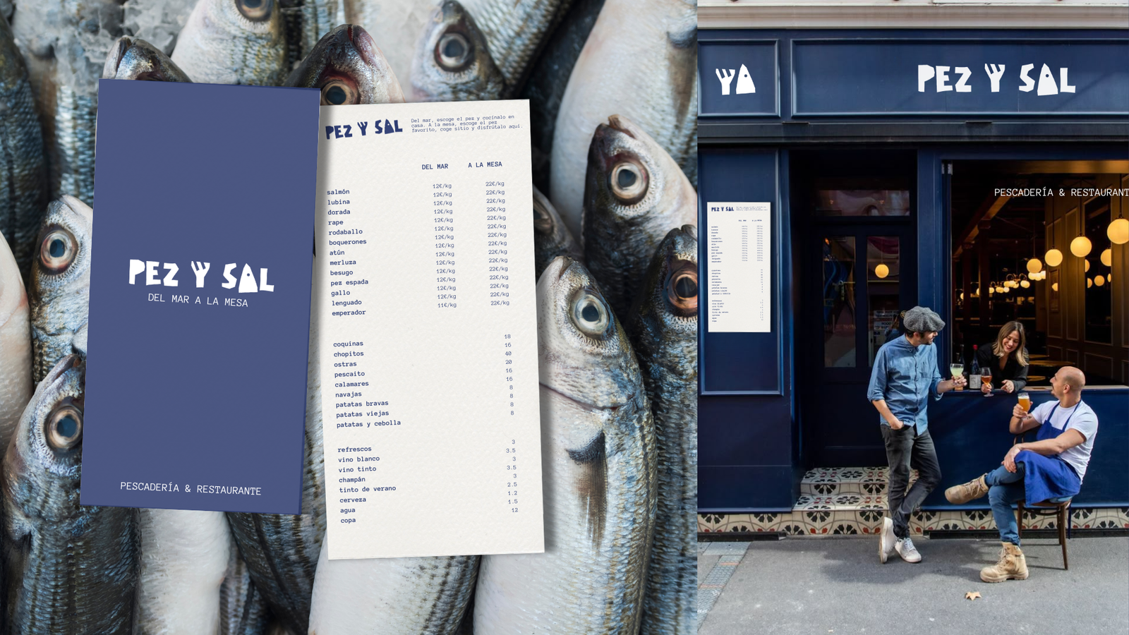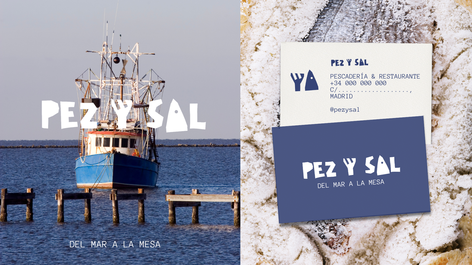 Inspirado en la primera lección que aprende todo buen cocinero, “no maltratar el ingrediente”, Pez y Sal ofrece una experiencia culinaria integral. El cliente elige el pez. Luego decide: llevarlo o comerlo allí mismo. Si elige quedarse, lo cocinan al momento, con un gesto mínimo y solo sal. Y directo a la mesa. La identidad visual, un sistema gráfico limpio y claro. Líneas orgánica, colores contenidos y una composición que pone en valor lo natural. Porque cuando el producto es bueno, menos es más.